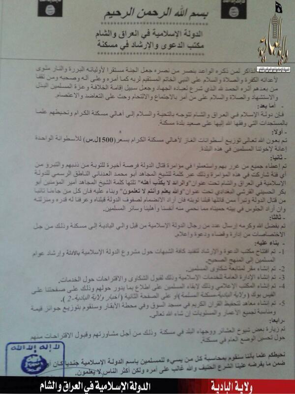 Document seized from one of the ISIS HQs